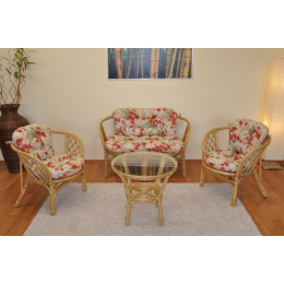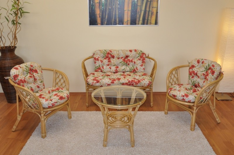 Ratanová sedacia súprava Bahama medová veľká podušky motív vlčie maky