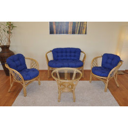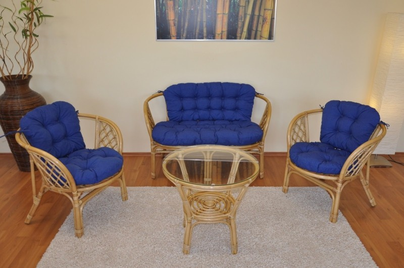 Ratanová sedacia súprava Bahama medová veľká podušky tmavomodrý melír