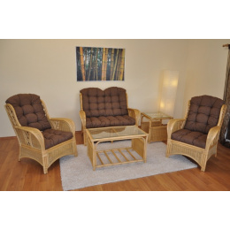 Ratanový nábytok - luxusná ratanová pohovka Oliver z prírodného ratanu. Vďaka svojmu dizajnu a spracovaniu je táto pohovka jednou z najpredávanejších ratanových pohoviek. | Luxusná ratanová sedacia súprava Oliver sa skladá z týchto komponentov: - dve kreslá s rozmermi 80x91x96 cm, nosnosť kresla je 120 kg - pohovka s rozmermi 120x91x96 cm, nosnosť pohovky je 250 kg - konferenčný stolík so sklom 90x50x50 cm - konferenčný stolík so sklom 50x50x55 cm - kompletná sada vankúšov podľa fotografie. Farba ratanovej štruktúry a výpletu je medová. Toto je krásna ratanová sedacia súprava, ktorá určite ovládne každý priestor