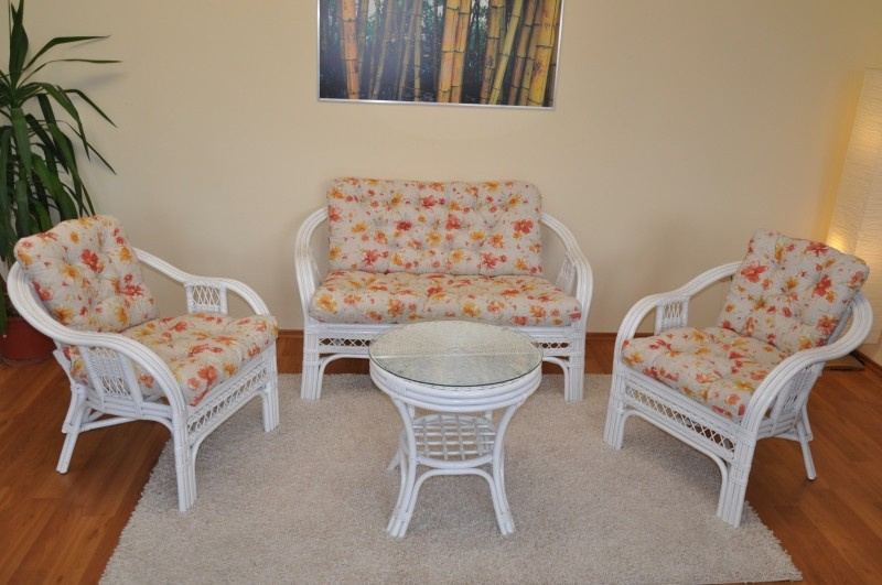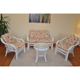 Ratanová sedacia súprava Rio De Janeiro biela polstre motív kvety