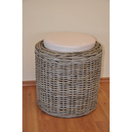 Ratanová stolička z prírodného ratanu s výpletom z ratanu kubu v prírodnej sivej farbe. | Veľkosť stoličky je: priemer 45 cm, výška 45 cm Nosnosť stoličky je 125 kg