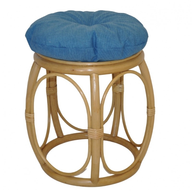 Ratanový nábytok - ratanová taburetka s poduškou. | Priemer taburetky v hornej časti je 35 cm. Výška taburetky je 38 cm. Nosnosť taburetky je 110 kg. Farba ratanovej konštrukcie je medová. Polster je vyrobený v Českej republike a je prateľný na 40oC. Materiál poťahu je 100% bavlna, výplň poťahu je drvený molitan.
