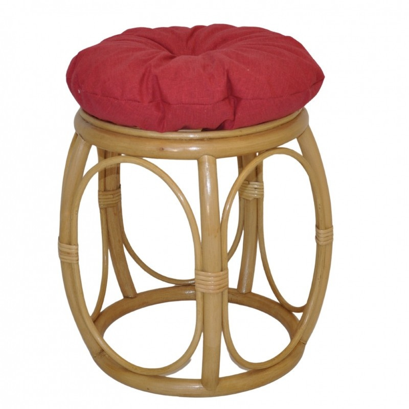Ratanový nábytok - ratanová taburetka s poduškou. | Priemer taburetky v hornej časti je 35 cm. Výška taburetky je 38 cm. Nosnosť taburetky je 110 kg. Farba ratanovej konštrukcie je medová. Polster je vyrobený v Českej republike a je prateľný na 40oC. Materiál poťahu je 100% bavlna, výplň poťahu je drvený molitan.