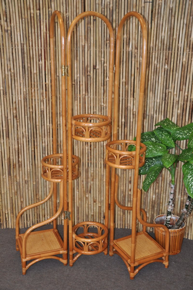 Ratanový paraván so stojanom na kvety med