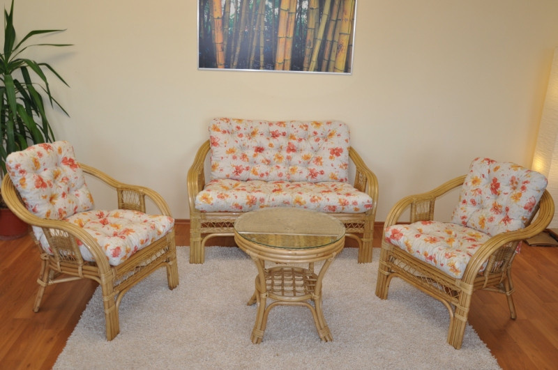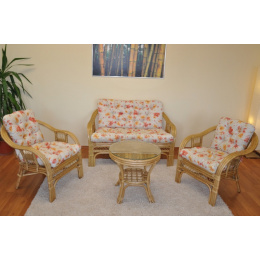 Ratanová sedacia súprava Rio De Janeiro medový polstrovaný kvetinový motív
