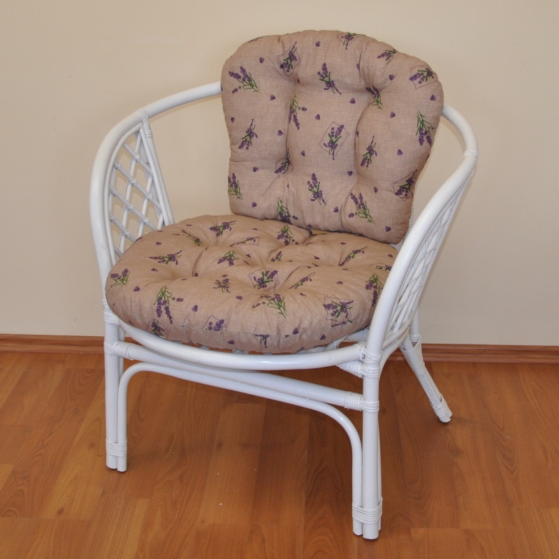 Ratanové kreslo Bahama biely vankúš levanduľový motív
