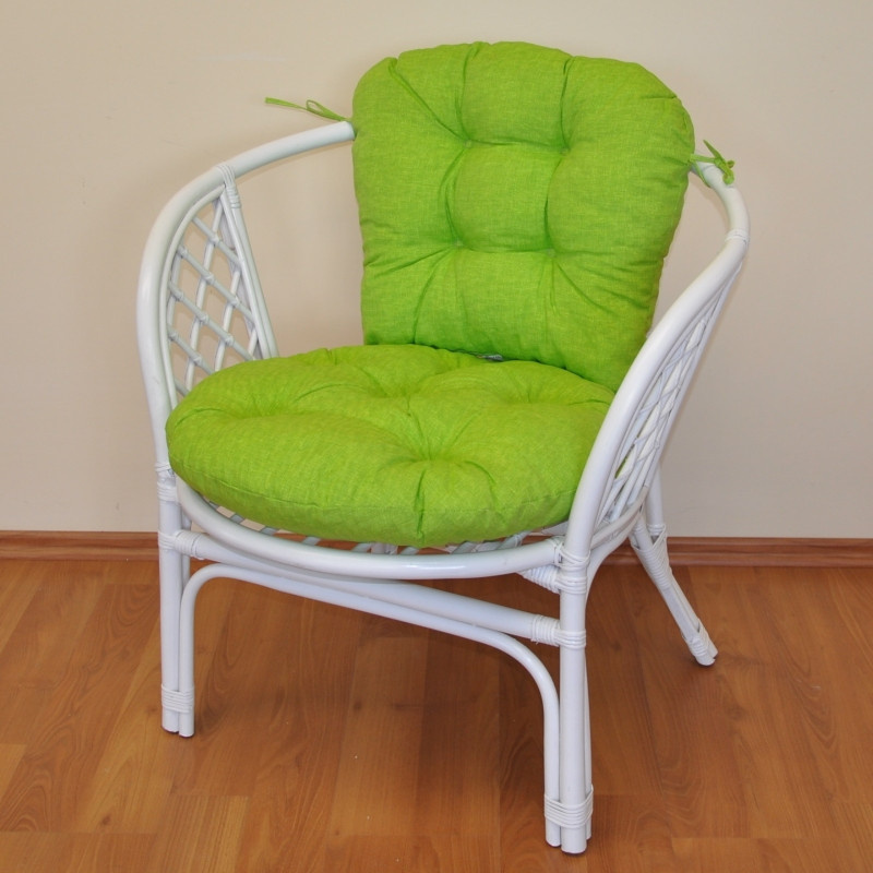 Ratanové kreslo Bahama biely vankúš svetlozelené odlesky