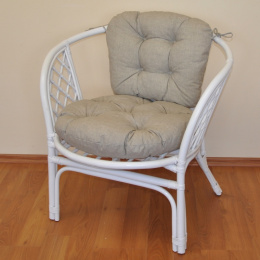 Ratanové kreslo Bahama biely vankúš tmavobéžové zvýraznenia