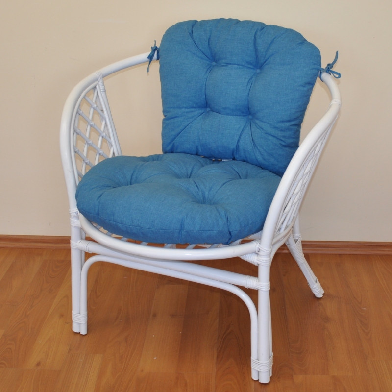 Ratanové kreslo Bahama biely vankúš tyrkysové odlesky
