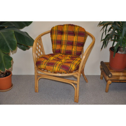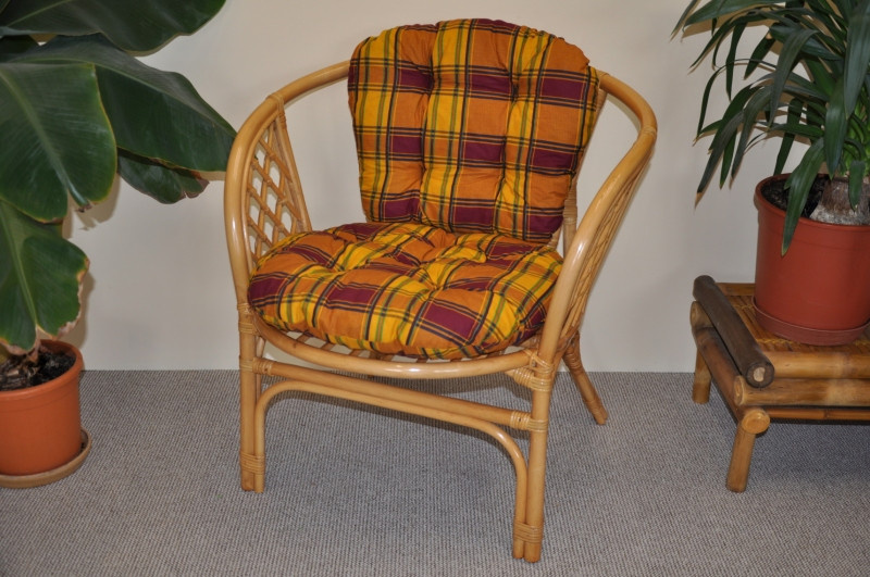 Ratanový nábytok - ratanové kreslo bahama samostatné s vankúšom podľa obrázka. | Farba ratanovej konštrukcie stoličky je medová. Nosnosť stoličky je 110 kg. Rozmery stoličky sú 68x66x73 cm. Výška sedadla je príjemných 43 cm. Kvalitný vankúš je vyrobený v ČESKEJ REPUBLIKE