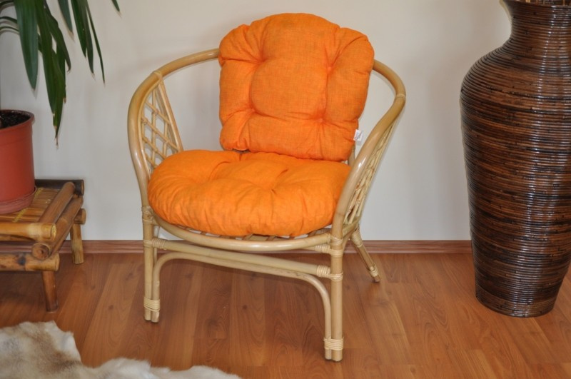 Ratanové kreslo Bahama medový vankúš oranžová zvýraznenia