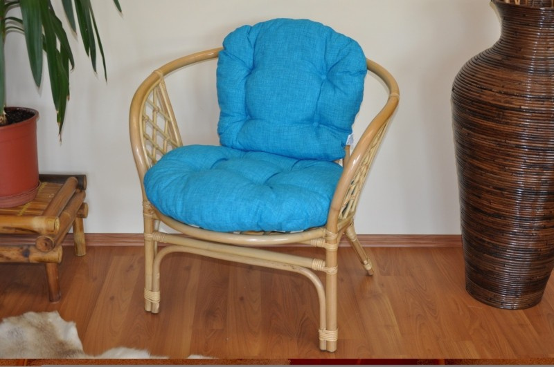 Ratanové kreslo Bahama medový vankúš tyrkysové zvýraznenia