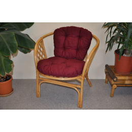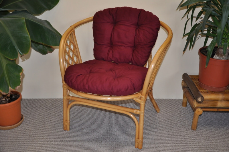 Ratanový nábytok - ratanové kreslo bahama samostatné s vankúšom podľa obrázka. | Farba ratanovej konštrukcie stoličky je medová. Nosnosť stoličky je 110 kg. Rozmery stoličky sú 68x66x73 cm. Výška sedadla je príjemných 43 cm. Kvalitný vankúš je vyrobený v ČESKEJ REPUBLIKE