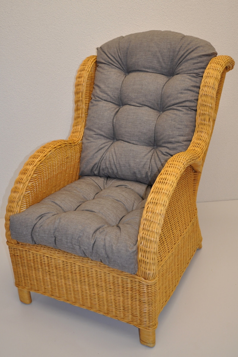 Ratanové kreslo Ear honey vankúš sivé zvýraznenia