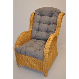 Pohodlné kreslo z prírodného ratanu. Konštrukcia stoličky je vyrobená z hrubých ratanových prútov a výplet z ratanových prútov s priemerom približne 3 mm | Farba ratanovej konštrukcie a výpletu je medová. Rozmery kresla Ear sú 63x86x98 cm. Nosnosť kresla Ear je 120 kg. Kvalitný vankúš je vyrobený v Českej republike.