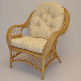Nádherné ratanové kreslo vyrobené z prírodného ratanu s kostrou z masívnych ratanových tyčí a výpletom z ratanových prútikov. | Kreslo je vďaka prepracovanej a príjemne tvarovanej konštrukcii veľmi pohodlné. Farba ratanovej konštrukcie aj ratanového výpletu je medová. Veľkosť kresla Florida je 76x80x97 cm, nosnosť kresla je 130 kg a výška sedu je 45 cm. Polstre z kvalitnej poťahovej látky sú vyrobené v Slovenskej republike.