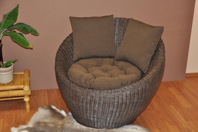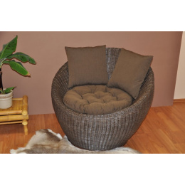 Krásne ratanové kreslo s konštrukciou z pevných prírodných ratanových prútov. Výplet je vyrobený z ratanových prútov s priemerom približne 3 mm. | Farba ratanovej štruktúry a výpletu je hnedá. Rozmery kresla sú 95x95x79 cm, nosnosť kresla je 125 kg Vankúše na ratanové kreslo sú vyrobené v Českej republike.