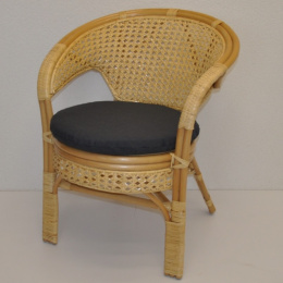 Ratanový nábytok - ratanové kreslo Kina je vyrobené z prírodného ratanu. Konštrukcia stoličky je vyrobená z pevných ratanových tyčí. | Rozmery stoličky sú 66x67x78 cm, nosnosť stoličky je 115 kg. Farba ratanovej konštrukcie a ratanového výpletu je medová. Vankúš je vyrobený v Českej republike.