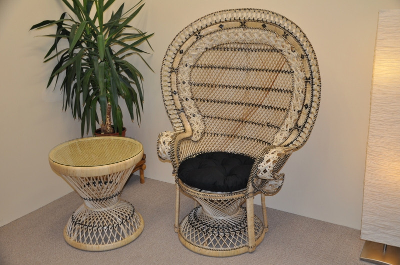 Ratanové kreslo King so stolíkom - čierne polstrovanie