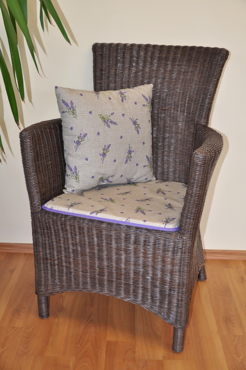 Ratanové kreslo Pluto hnedý vankúš levanduľa