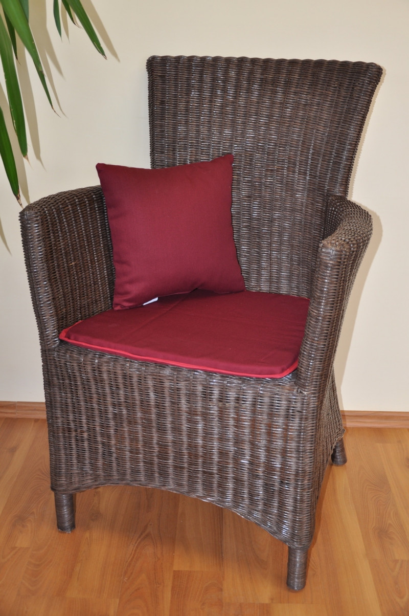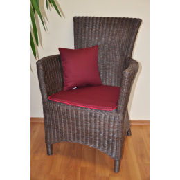 Ratanové kreslo s pevnou konštrukciou z prírodného ratanu a ratanovým výpletom s priemerom približne 3 mm. Vďaka svojej konštrukcii ponúka kreslo pohodlné sedenie. | Veľkosť stoličky 63x56x94 cm, nosnosť 110 kg Farba ratanovej konštrukcie a výpletu je hnedá. Materiál výplne 100 % bavlna, výplň pena. Vankúš je vyrobený v Českej republike a je možné ho prať pri 40oC