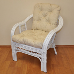 Ratanové kreslo Rio De Janeiro biele - poduška béžový melír