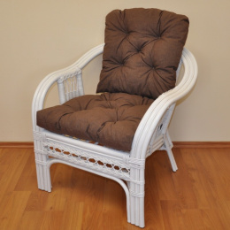 Ratanové kreslo Rio De Janeiro biele - poduška hnedý melír