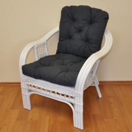 Ratanové kreslo Rio De Janeiro biele - poduška tmavo sivý melír