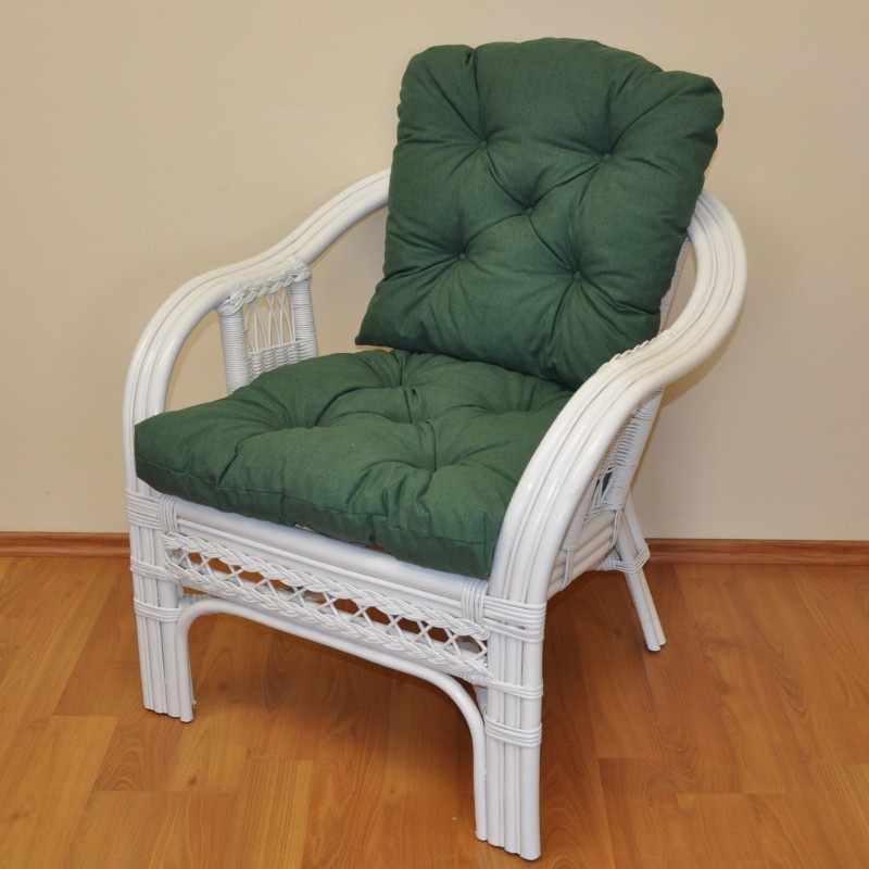 Ratanové kreslo Rio De Janeiro biele - poduška tmavozelený melír