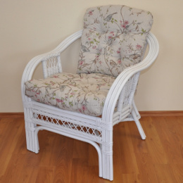 Ratanové kreslo Rio De Janeiro biele - vankúš s motívom vtákov