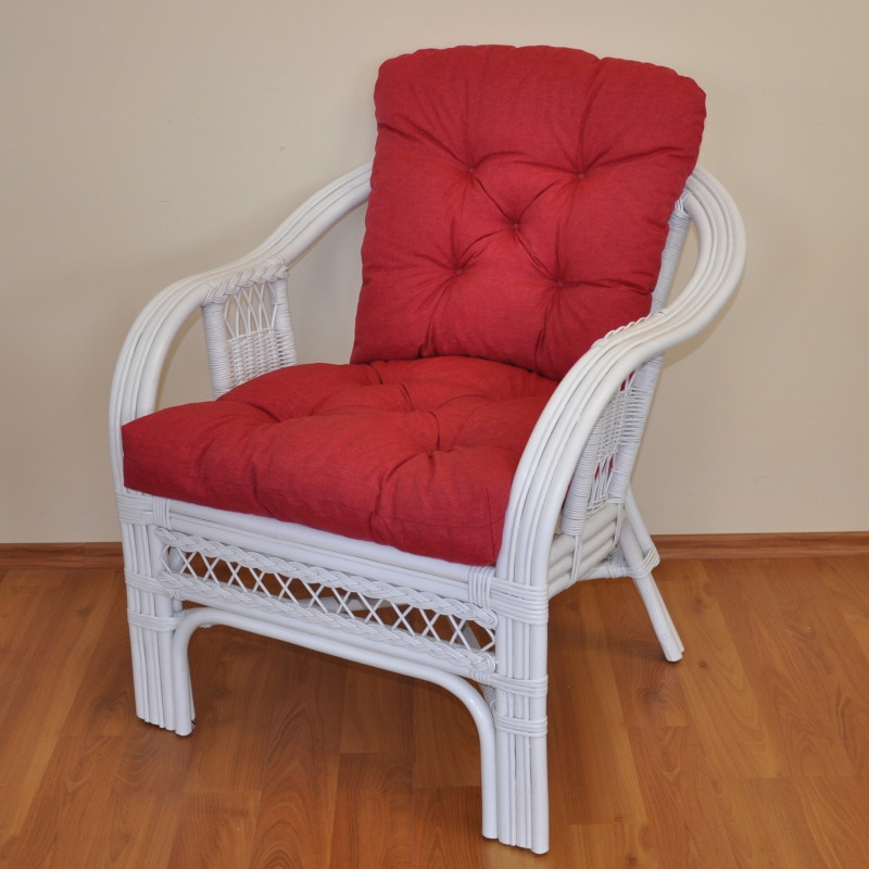Ratanové kreslo Rio De Janeiro biele - vankúš bordový