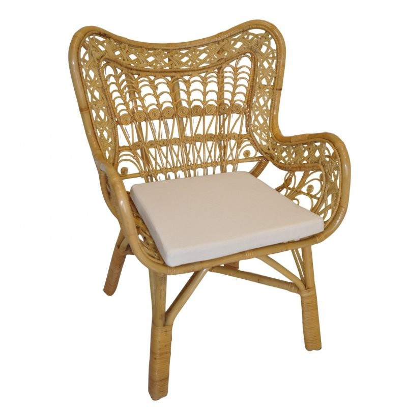Kreslo vyrobené z prírodného ratanu. | Farba ratanovej konštrukcie aj ratanového výpletu je medová. Veľkosť kresla je 77x70x103 cm. Výška sedu kresla je 50 cm.