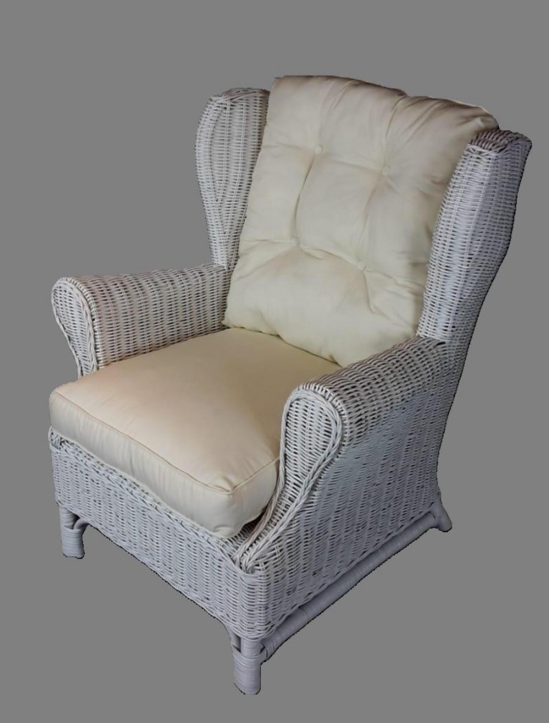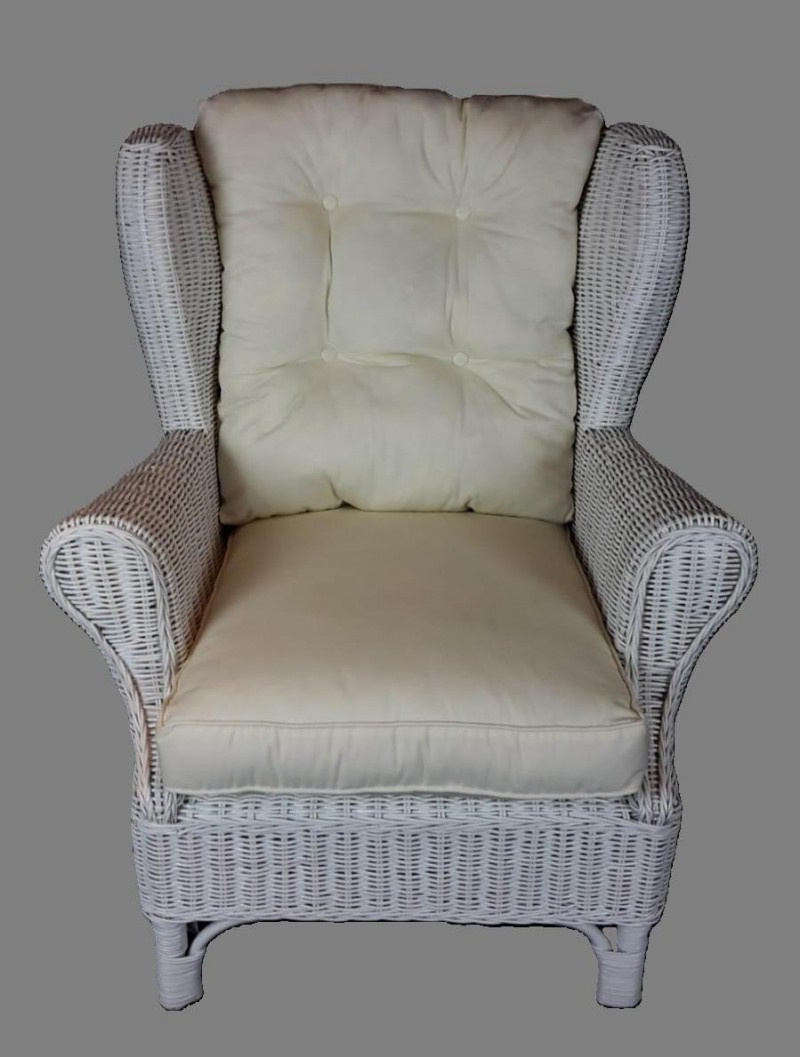 Ratanové kreslo ušiak biele polster biely FL