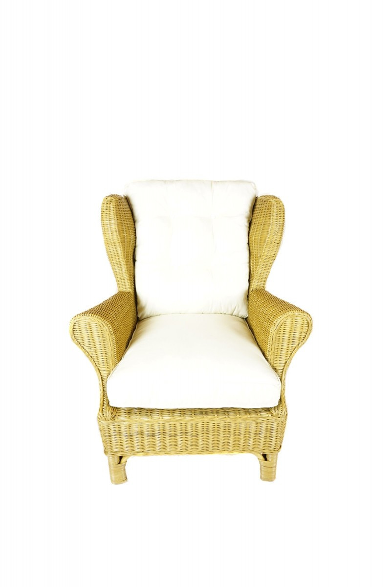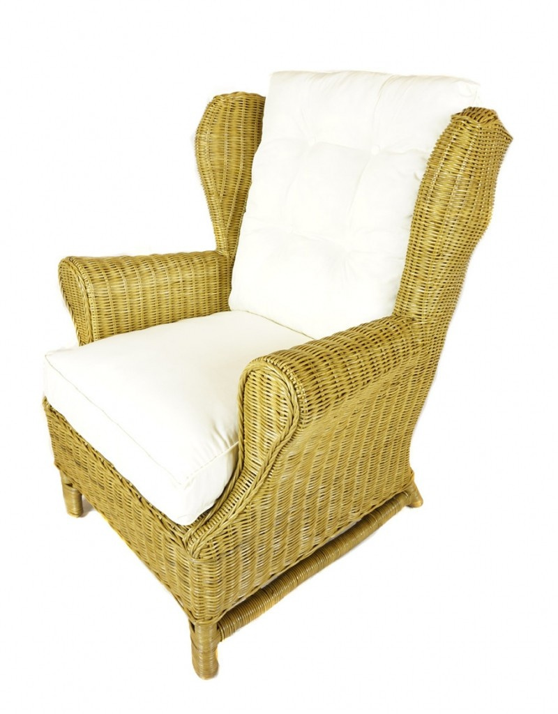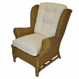 Ratanové kreslo ušiak medové polster biely FL