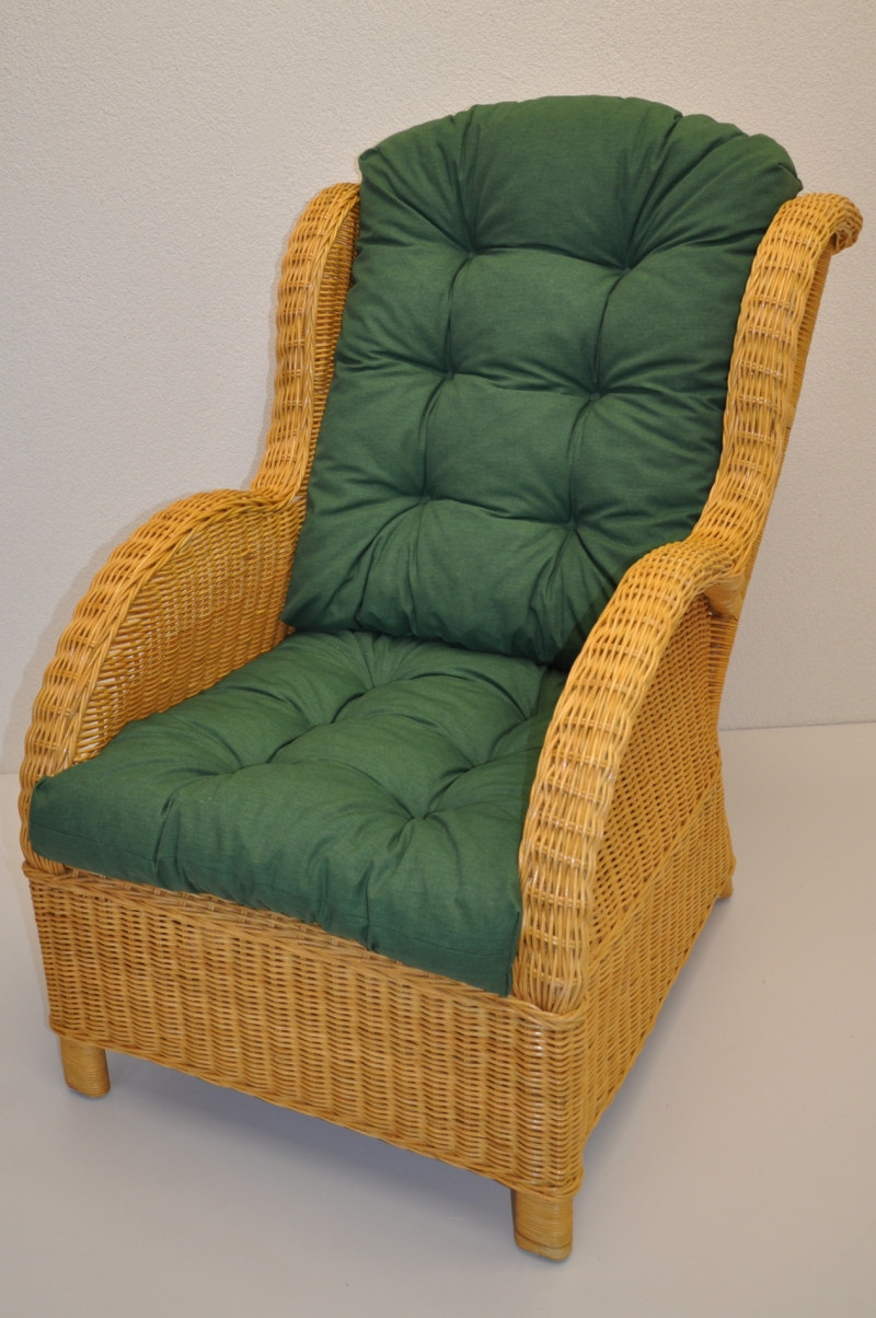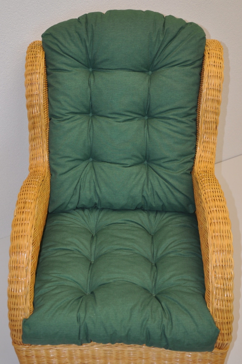 Ratanové kreslo Ušný medový vankúš tmavozelené odlesky