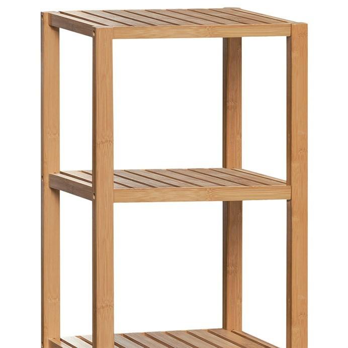 Multifunkčný regál s piatimi policami. Nosná konštrukcia a police sú vyrobené z masívneho bambusu a nalakované kvalitným trasparentným lakom. Bambus ako taký je vodoodpudivý a s touto úpravou dosahuje veľmi dobrú odolnosť voči vode. Vďaka spracovaniu a použitému materiálu je polička vhodná do kúpeľne, ale bude sa hodiť aj do iných častí domácnosti. Police sú pevné mriežkované, prípadná rozliata voda bez problémov odtečie.. Ich nosnosť je do 3 kg, celkovo 15 kg. Rozstup políc je 29 cm. Či už policu použijete na uloženie kozmetiky, uterákov a osušiek, alebo ako stojan na kvety či dekorácie, vždy s ňou budete spokojní. Záleží na vašich nápadoch.