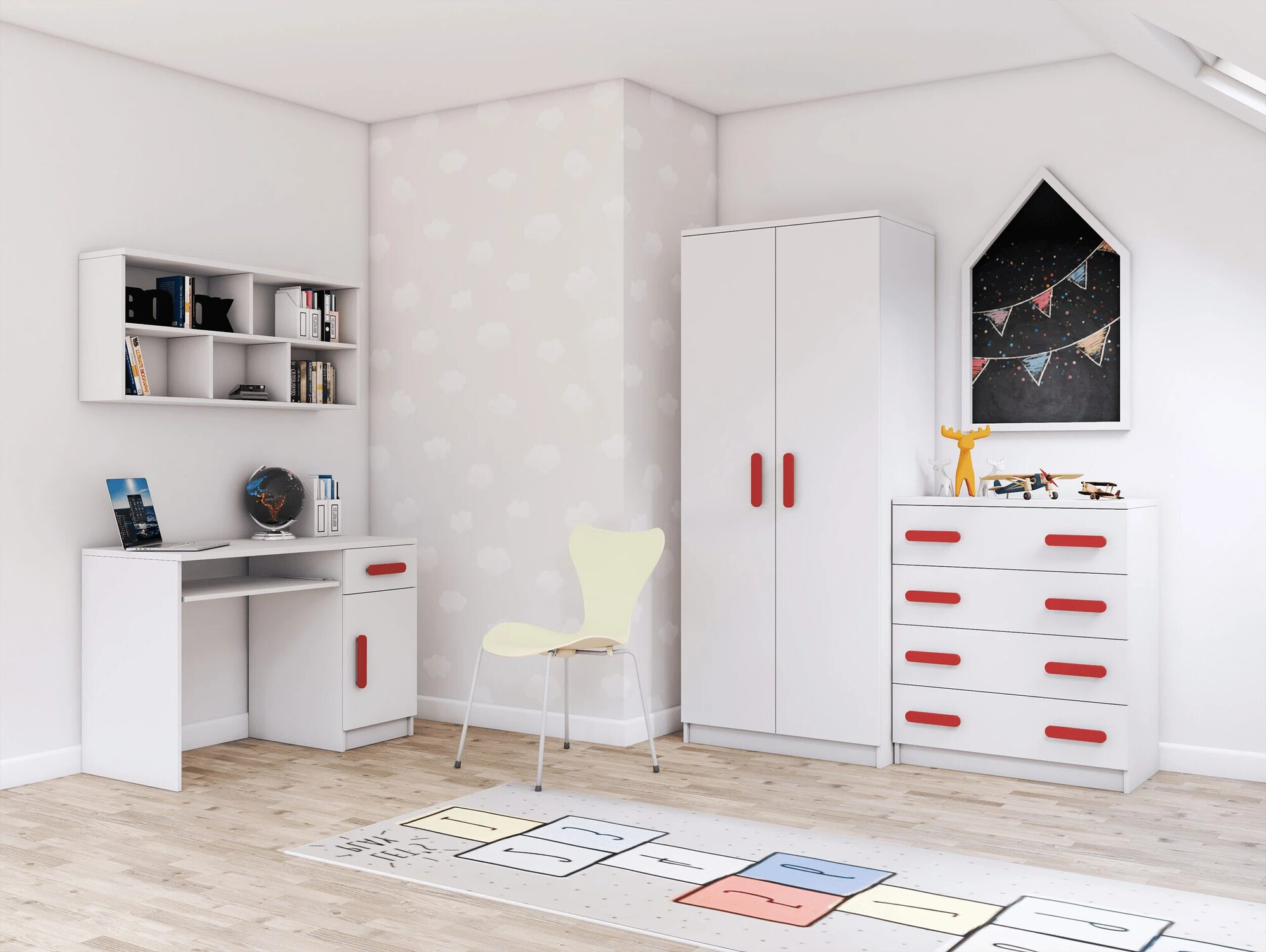 Náš inovatívny systém umožňuje ľubovoľne zostaviť zostavu nábytku z dostupných kusov. Nábytok môžete prispôsobiť veľkosti izby a potrebám dieťaťa a vytvoriť tak funkčný a premyslený priestor. Či už potrebujete posteľ, šatníkovú skriňu, písací stôl alebo knižnicu, "Smyk I" ponúka širokú škálu nábytku, ktorý vám pomôže vytvoriť dokonalé miesto na hru, štúdium a odpočinok vášho dieťaťa.