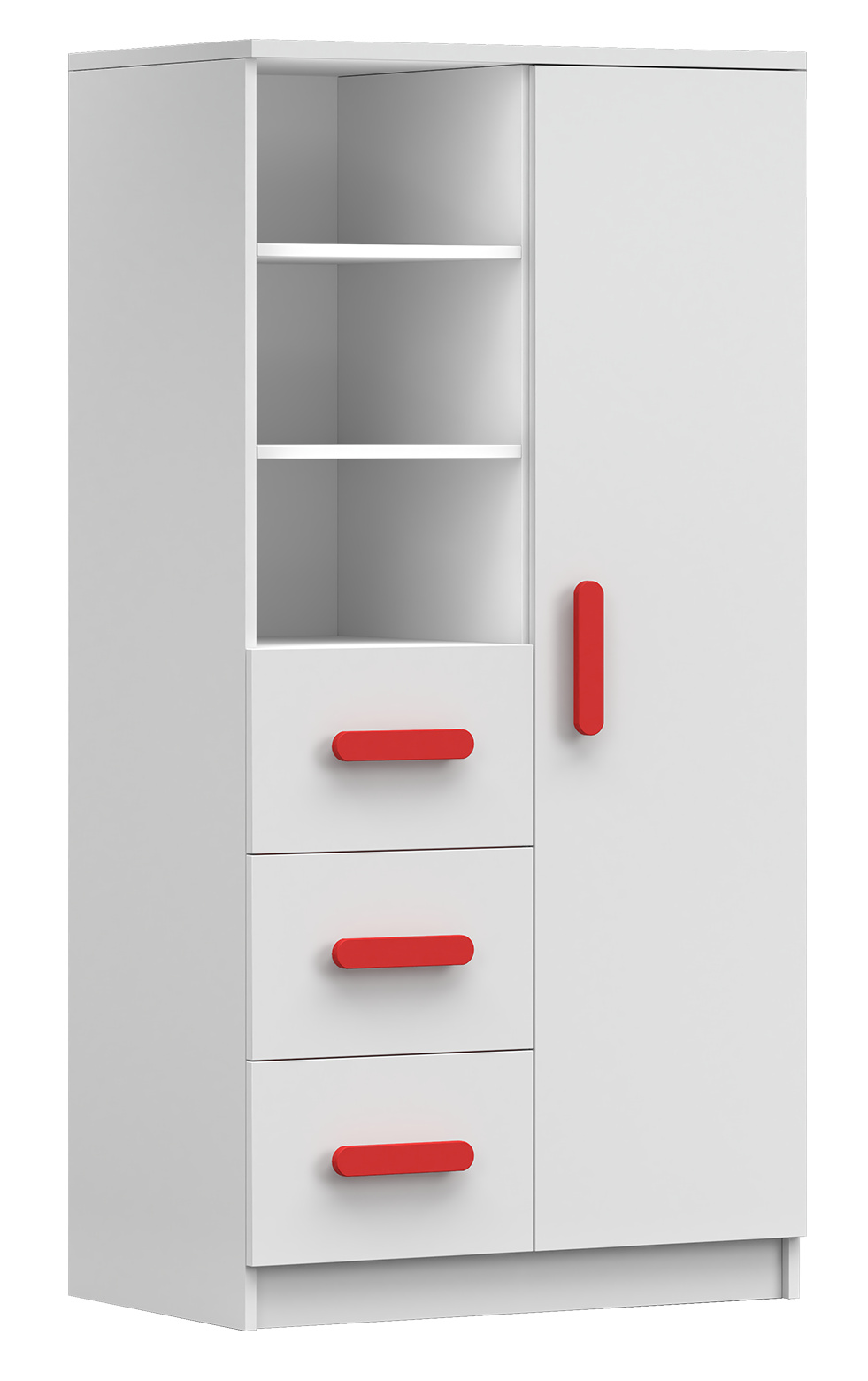 Regál 80 3S1D SMYK I - 05, Biela Mat/Červená