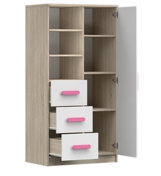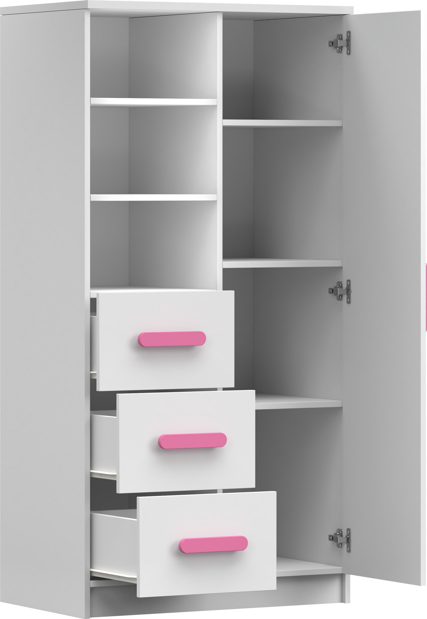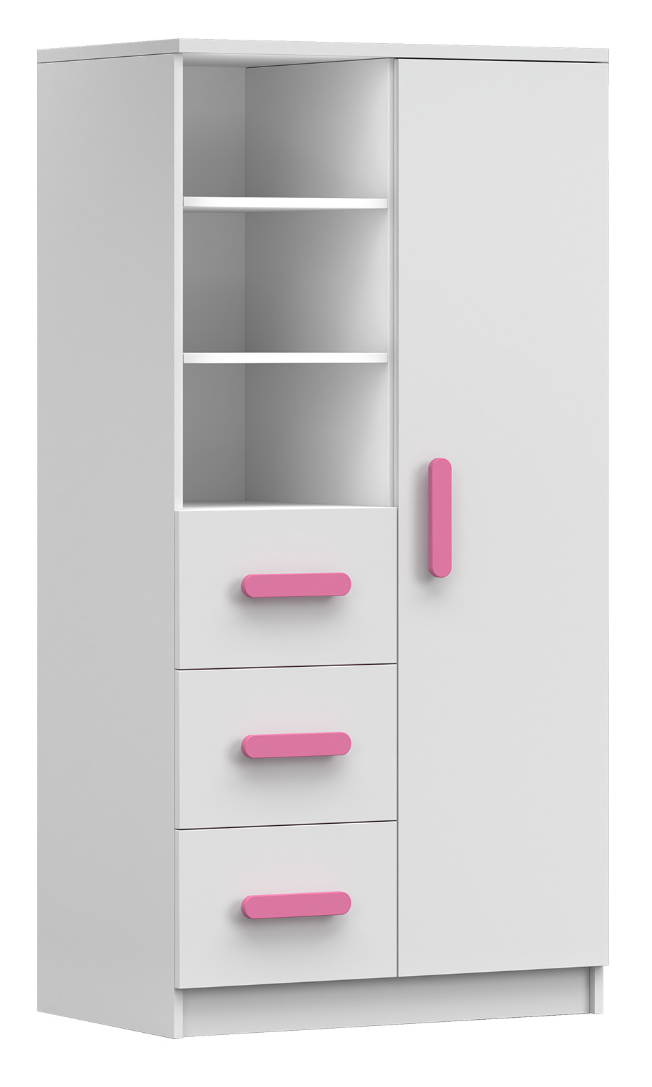 Regál 80 3S1D SMYK I - 05, Biela Mat/Ružová