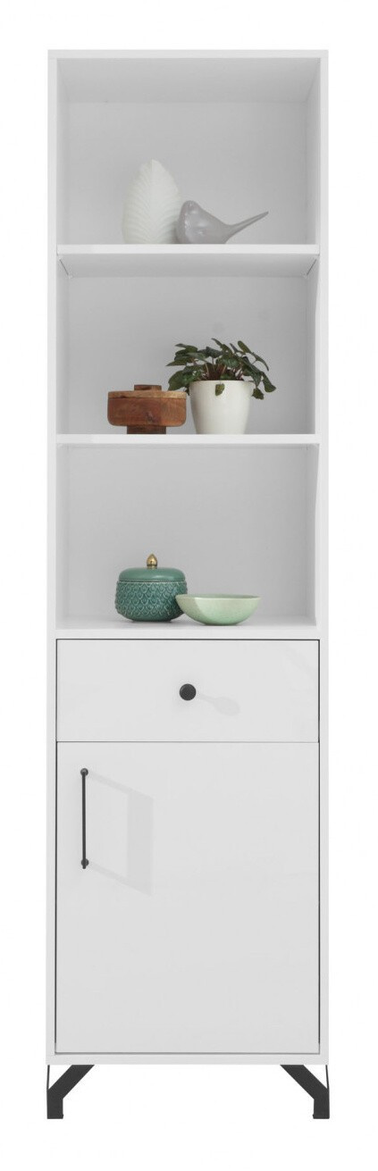 Regál BERGEN - BE5 L/P, biely Lux + biely vysoký lesk
