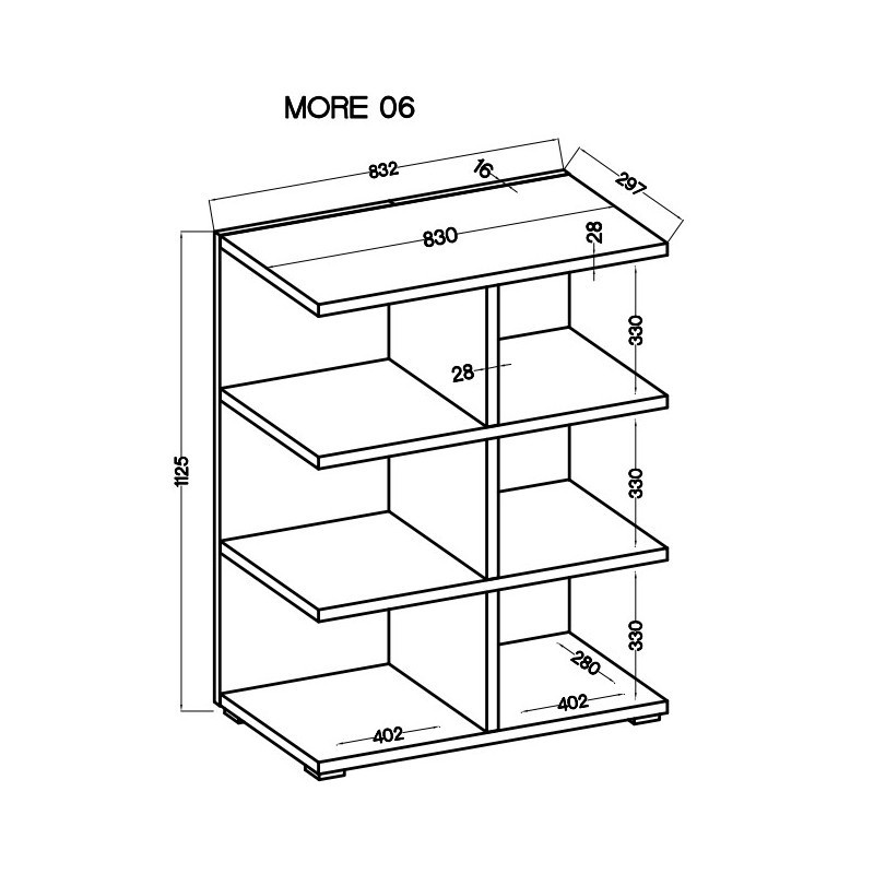Regál Marek môžete použiť mnohými spôsobmi. Môže slúžiť napríklad ako deliaca stena na oddelenie zón v miestnosti, ako knižnica alebo ako polica na hračky či dekorácie. Polica je vyrobená z 28 mm hrubého laminátu s 0,4 mm hranami ABS, ktorý je odolný a ľahko sa udržiava. Polica sa dodáva v demontovanom stave. Balenie obsahuje návod na montáž vrátane všetkého potrebného spojovacieho materiálu. Farby na fotografii sa môžu líšiť od skutočnosti z dôvodu nastavenia monitorov alebo displejov telefónov. Zobrazené príslušenstvo a dekorácie nie sú súčasťou balenia.