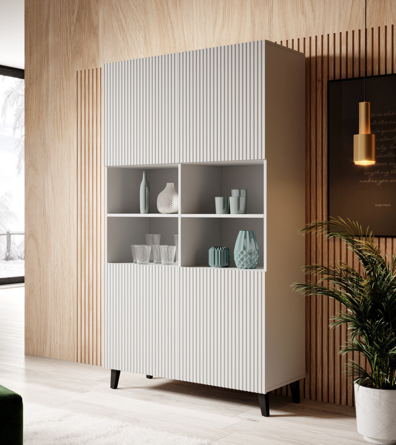 Rozmery regálu 100: š/s/g- 176,5/100,5/40 Korpus: 16 mm matná laminovaná doska Čelo regálu: 16 mm laminovaná MDF doska potiahnutá PCV fóliou s viditeľnými výrezmi, lemovanie: ABS plast Nohy: plast Úchyty: žiadne, systém PUSH-CLICK 2 čelá ako štandard, ďalšie čelá je možné dokúpiť. CAMA-PAFOS-FRONT
