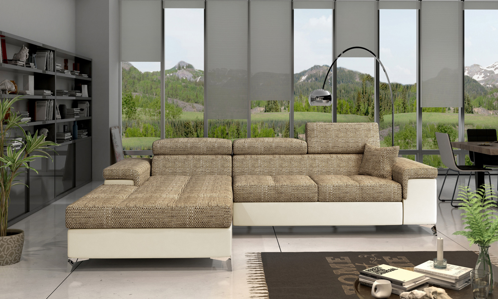 Ricardo je jednoduchá a štýlová rohová pohovka s premyslenými ozdobami v modernom klasickom štýle, pretože klasické telo je doplnené mnohými modernými úpravami jednotlivých prvkov. Priestranná rohová pohovka s rozmermi 280 x 205 x 90 cm bude ideálna ako kus nábytku na dennú relaxáciu, ale môže tiež slúžiť ako miesto na spanie s rozmermi 125 x 210 cm. Tento model je vybavený skladacou funkciou na spanie, založenou na jednoduchom a intuitívnom systéme delfín. Okrem toho má tiež priestranný úložný priestor na posteľnú bielizeň umiestnený v otomane. Účinok mäkkosti a pružnosti je spôsobený použitím vysoko kvalitnej peny a použitím vlnitých pružín. Pohodlné sedadlo, široké opierky rúk, nastaviteľné opierky hlavy a chrómované nohy si zaslúžia ďalšie ocenenie v našom nábytku. Tento model je navyše k dispozícii v celej škále farieb Eltap. Zaručujeme, že s rohovou pohovkou ako je Ricardo budete na 101 % spokojní.