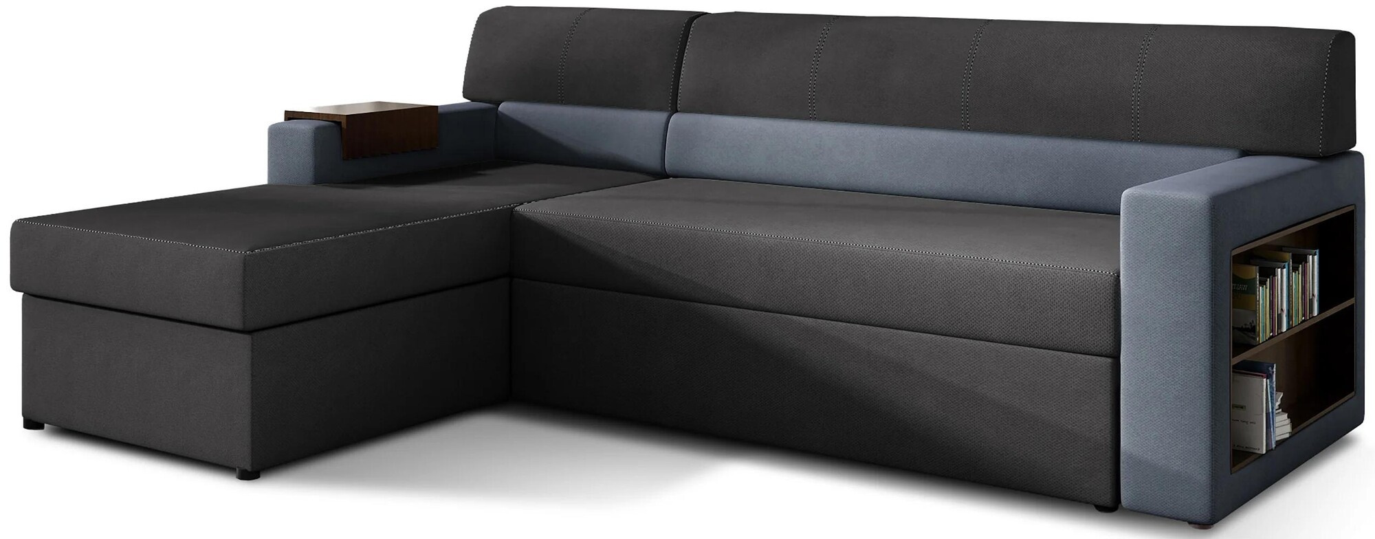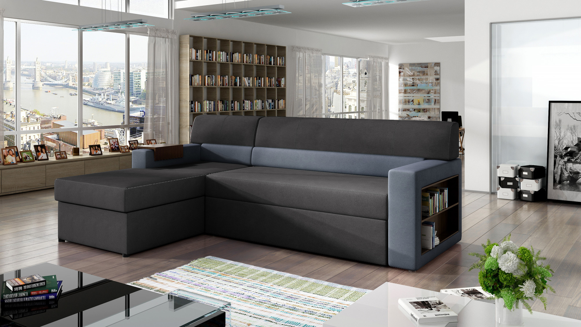 Rico je multifunkčná, originálna rohová pohovka s rozmermi 250 x 160 x 85 cm, vyrobená v modernom, praktickom štýle. Vďaka funkcii typu delfín je Rico tiež vhodný na nočný odpočinok. Veľká spacia plocha má rozmery 210 x 125 cm, čo zaručuje dlhý a plnohodnotný odpočinok. Ďalšou funkciou tohto modelu je priestranný úložný priestor na posteľnú bielizeň umiestnený v otomane. Zážitok maximálneho pohodlia je zaručený vďaka pene T30 a vlnitej pružine, z ktorých je sedák vyrobený. Tento typ výplne na jednej strane zaručuje absenciu deformácií a nevzhľadných preliačin, na druhej strane - pohodlie a bezpečné umiestnenie tela pri odpočinku. Výber rohovej pohovky Rico - stojí za to pozrieť sa na jej jedinečný dizajn, pretože kombinuje jednoduchosť s inováciou. Okrem toho má jednoduchý, elegantný tvar, klasické usporiadanie a odolnú, pevnú konštrukciu. Dojem neobvyklého dizajnu je umocnený drevenou policou a prekrytím zabudovaným do boku nábytku. Rico je ideálny pre fanúšikov originálnych riešení. Taká voľba bude určite trefou do čierneho.
