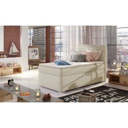 Rocco je skromná, ale vkusná jednolôžková kontinentálna posteľ s pružinovým matracom, ktorá je známa svojou funkčnosťou a maximálnym pohodlím. Nábytok s plochou na spanie o rozmeroch 90 x 200 cm je vybavený 20 cm vysokým bonellovým matracom, ktorý je spevnený dvoma ďalšími vrstvami peny T25, umiestnenými na hornej a spodnej strane matraca. Okrem toho si zaslúži uznanie aj topper vyrobený z peny T21 o hrúbke 4 cm. Medzi charakteristické črty tohto modelu môžeme zahrnúť: priestranný úložný priestor na lôžkoviny rozdelený na tri časti, vysoké operadlo, elegantné kovové nohy a možnosť výberu čalúnenia z dostupnej širokej škály farieb.