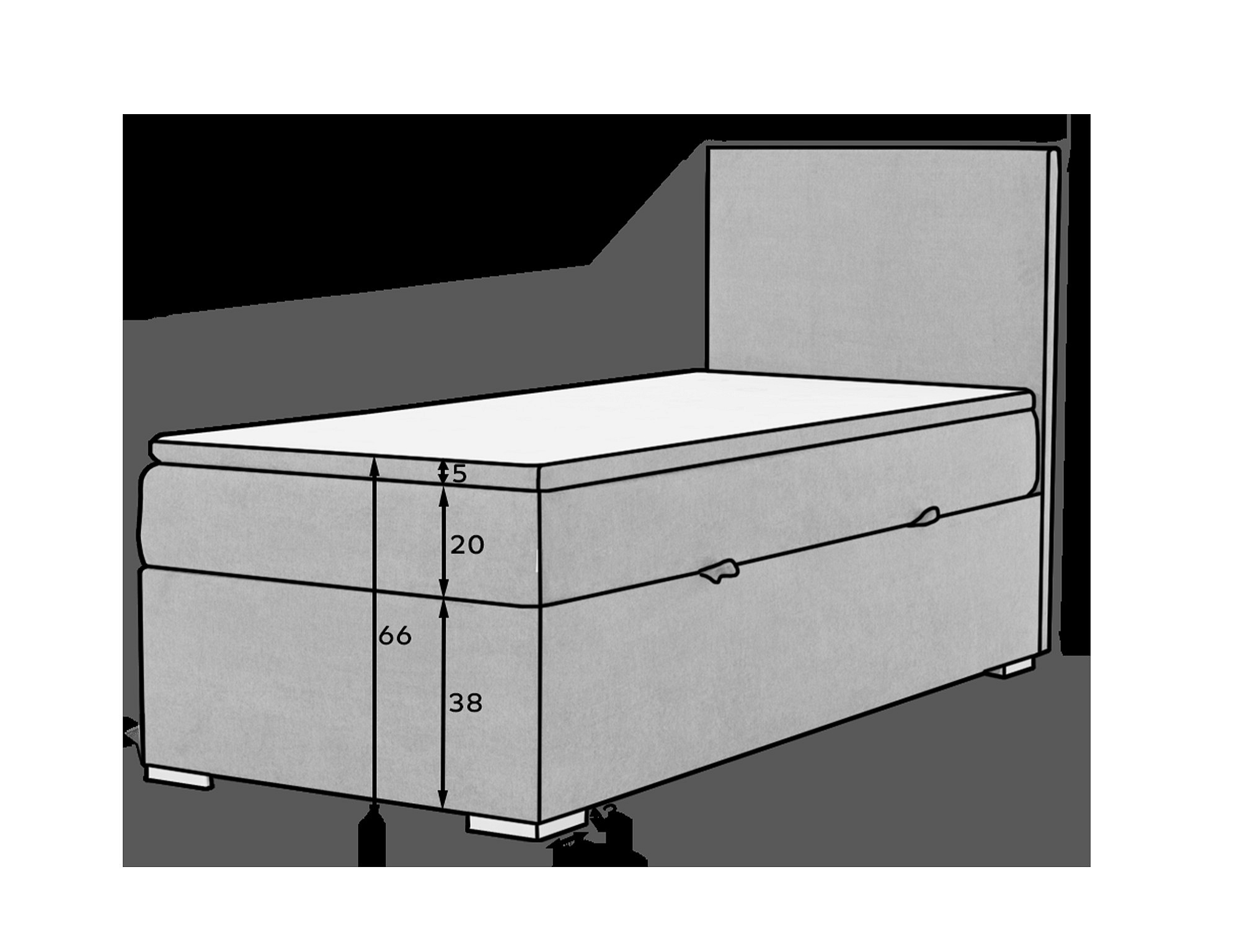Rocco je skromná, ale vkusná jednolôžková kontinentálna posteľ s pružinovým matracom, ktorá je známa svojou funkčnosťou a maximálnym pohodlím. Nábytok s plochou na spanie o rozmeroch 90 x 200 cm je vybavený 20 cm vysokým bonellovým matracom, ktorý je spevnený dvoma ďalšími vrstvami peny T25, umiestnenými na hornej a spodnej strane matraca. Okrem toho si zaslúži uznanie aj topper vyrobený z peny T21 o hrúbke 4 cm. Medzi charakteristické črty tohto modelu môžeme zahrnúť: priestranný úložný priestor na lôžkoviny rozdelený na tri časti, vysoké operadlo, elegantné kovové nohy a možnosť výberu čalúnenia z dostupnej širokej škály farieb.