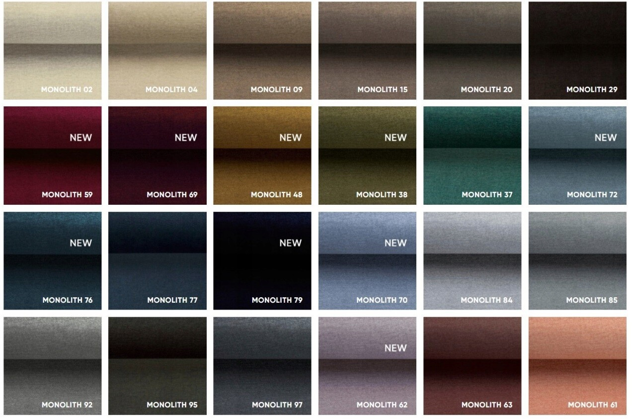 Tkanina Monolith je pevná, ale na dotyk príjemná poťahová látka. Je obohatená špeciálnou hybridnou vrstvou, ktorá zabraňuje prenikaniu kvapalín do štruktúry tkaniny. Táto príjemná a odolná tkanina sa skvele hodí do každej domácnosti aj verejných priestorov. Je to tiež skvelá tkanina pre deti a materiál odolný voči domácim zvieratám.