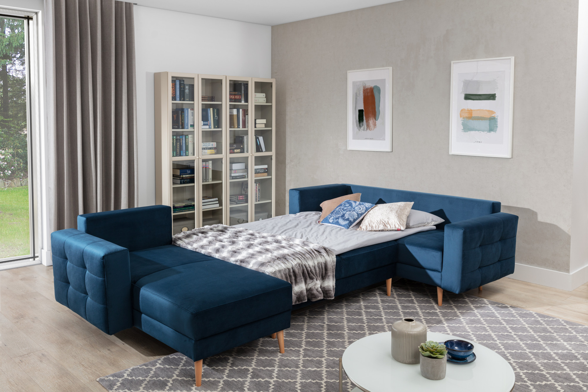 Rohová sedacia súprava Asgard U je vyrobená z vysokokvalitných materiálov.Konštrukcia pohovky je vyrobená z kombinácie dreva a drevotriesky. Sedacia časť je vyrobená v kombinácii polyuretánovej peny T3030, polyuretánovej peny T2140 a kostí Faliste.Sedacia súprava je rozkladacia pomocou systému DL Automatic. Pohovka má priestranný úložný priestor na uloženie posteľnej bielizne.