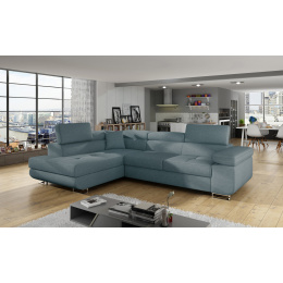 Rohová sedacia súprava ATOS je vyrobená z kvalitných materiálov.Konštrukcia pohovky je vyrobená z kombinácie dreva a drevotriesky. Sedacia časť je vyrobená z kombinácie polyuretánovej peny T3040+T2542 a vlnitých pružín. Na podopretie pohovky sa používa polyuretánová pena T2542/T3040.Sedacia súprava je rozkladacia pomocou rozkladacieho typu Dolphin. Pohovka má priestranný úložný priestor na uloženie posteľnej bielizne.