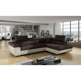 Rohová sedacia súprava ATOS je vyrobená z kvalitných materiálov.Konštrukcia pohovky je vyrobená z kombinácie dreva a drevotriesky. Sedacia časť je vyrobená z kombinácie polyuretánovej peny T3040+T2542 a vlnitých pružín. Na podopretie pohovky sa používa polyuretánová pena T2542/T3040.Sedacia súprava je rozkladacia pomocou rozkladacieho typu Dolphin. Pohovka má priestranný úložný priestor na uloženie posteľnej bielizne.